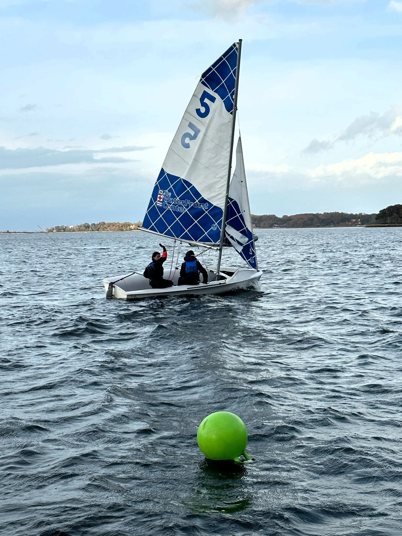 Practice sessions are led by WFC coaches and consist of both on-shore and on-the-water components. The majority of each practice session is held on the water in the WFC sailing area (West Harbor, Oyster Bay), with sailors practicing in double-handed 420s and coaches alongside in safety boats. On-shore activities include fitness training and interactive classroom sessions that cover racing rules, strategy and tactics.