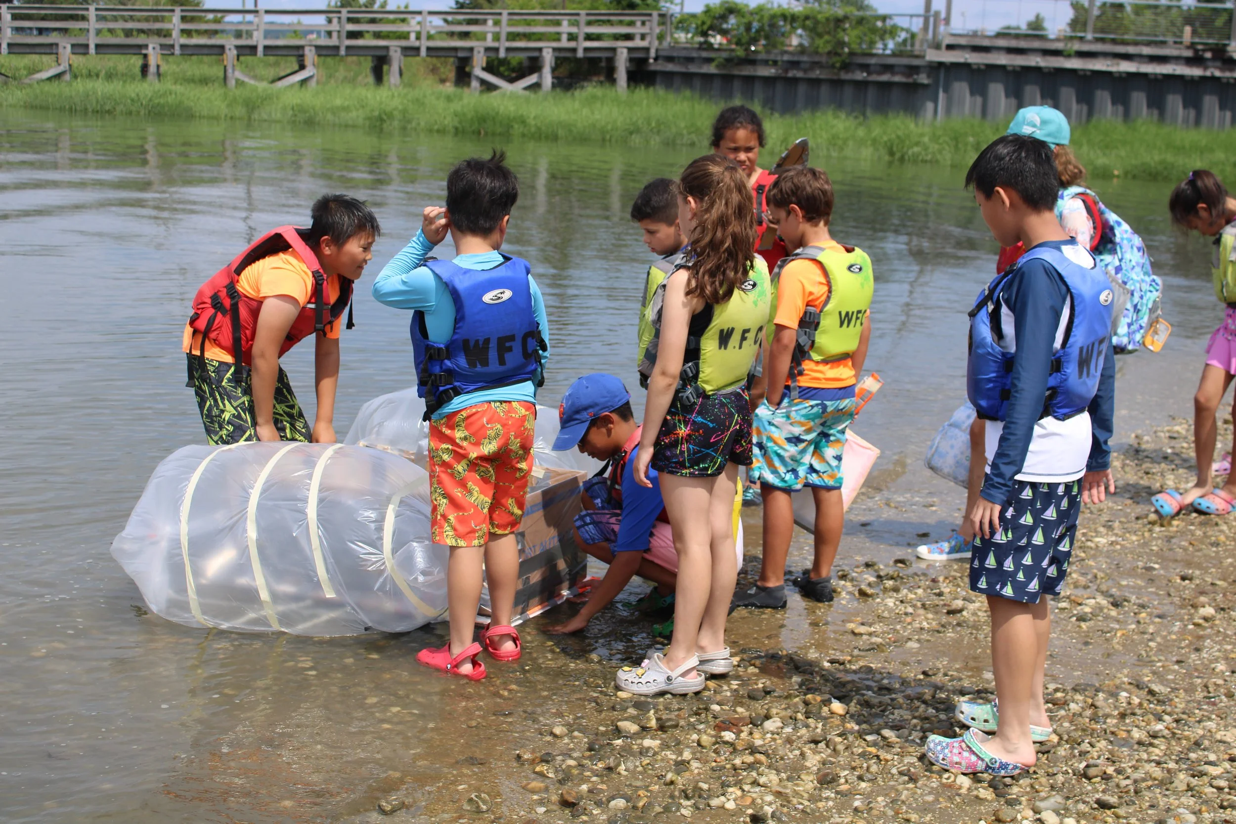 In week one, we learned about weathering and erosion by creating a huge dam in the freshwater stream! We then demonstrated the importance of wearing sunscreen, learning about the science of UV and its effects. Things then took a chipper turn as we learned about beavers and their unique role as ecosystem engineers! We then finished the week off by putting together a boat from recycled materials and setting off into the bay!