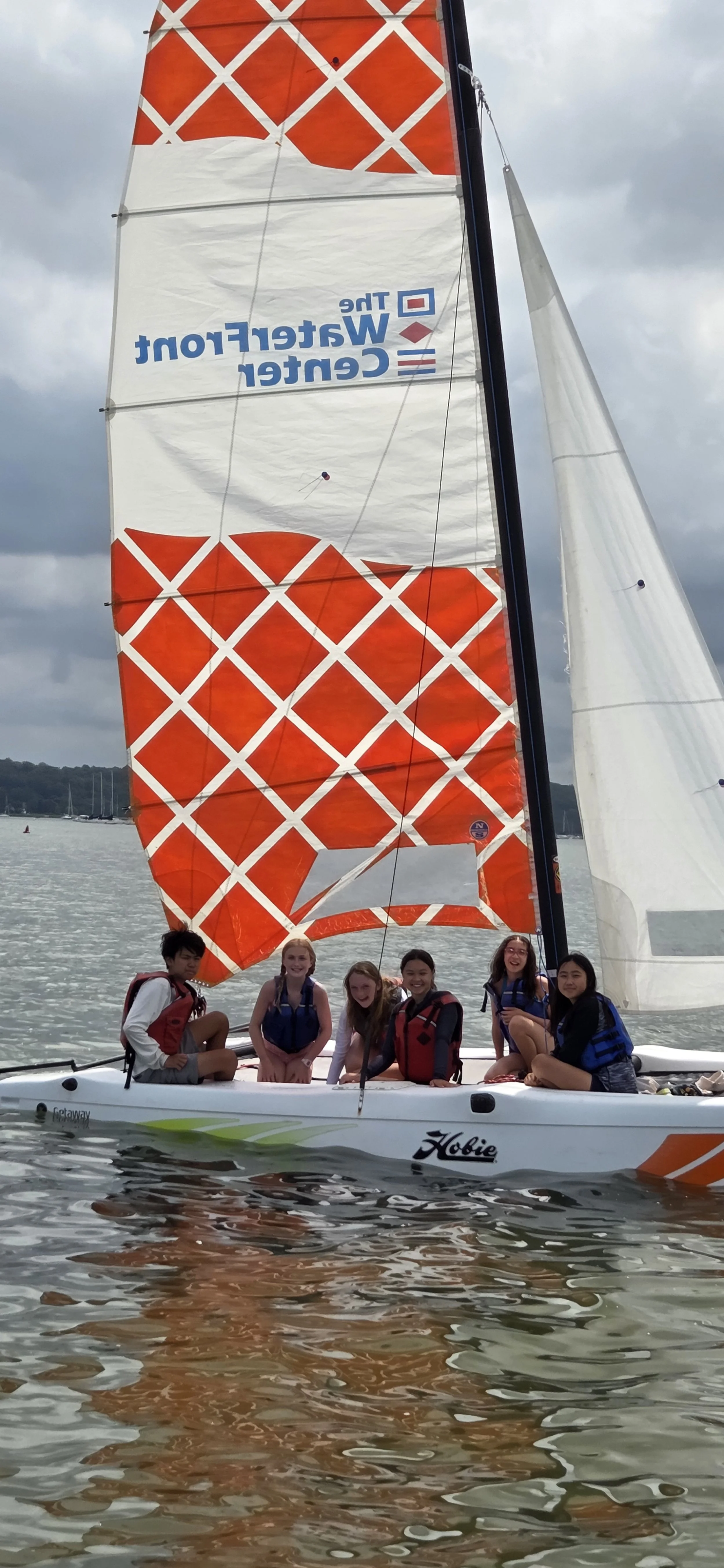 In week two, we continued exploring Oyster Bay on both hobies and sonars. After learning about zigzagging upwind last week, we spent some of this week figuring out just how close sailboats can point to where the wind is coming from without getting stuck in the “no-go zone”. We also practiced downwinds and improved our skills with flying the spinnaker on sonars. We ended things off with Jeopardy and a wild scavenger hunt!