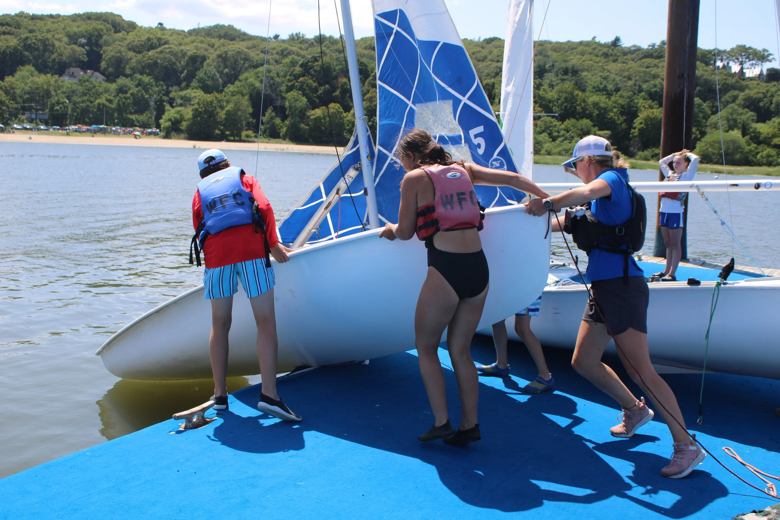 The first week was an amazing start to the session! Each day, we focused on getting more and more comfortable with Hobies, reviewing rigging, tacking, and gybing, and building confidence on the water. Even with some slower winds, we had plenty of fun sailing around the bay!
