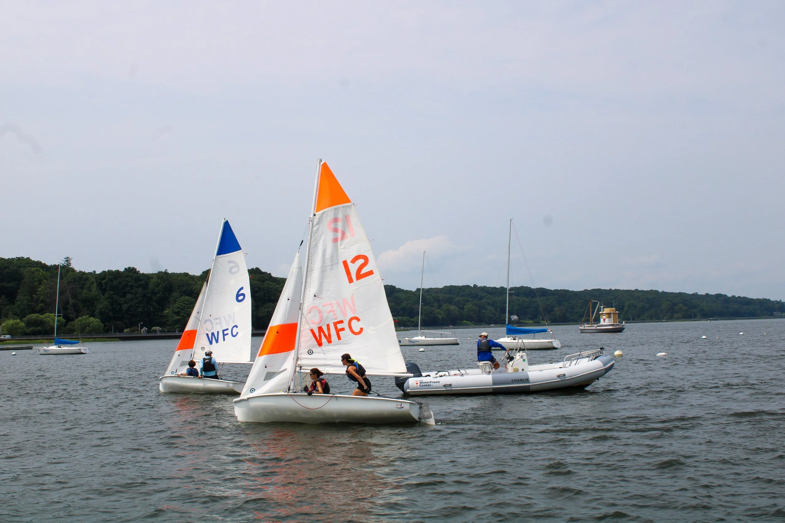 Adventure Sailing class experienced sailing on Hobie Waves and Getaways during multiple high wind afternoons. The class explored Oyster Bay, visiting the “Taco Bell” mansion along with Billy Joel’s house. While they were sailing, the class practiced the skills of steering with a rudder, tacking, jibing, and points of sail.